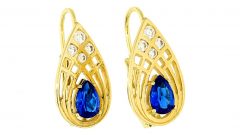 Čtveřici nám uzavírá úžasný tmavě modrý safír, který vypadá naprosto unikátně v náušnicích z bílého zlata. Tento drahý kov s nádherným kovově bílým leskem je pro safír jako stvořený. Od nepaměti mají safíry čestné místo v mnoha korunovačních klenotech a zásnubních prstenech.